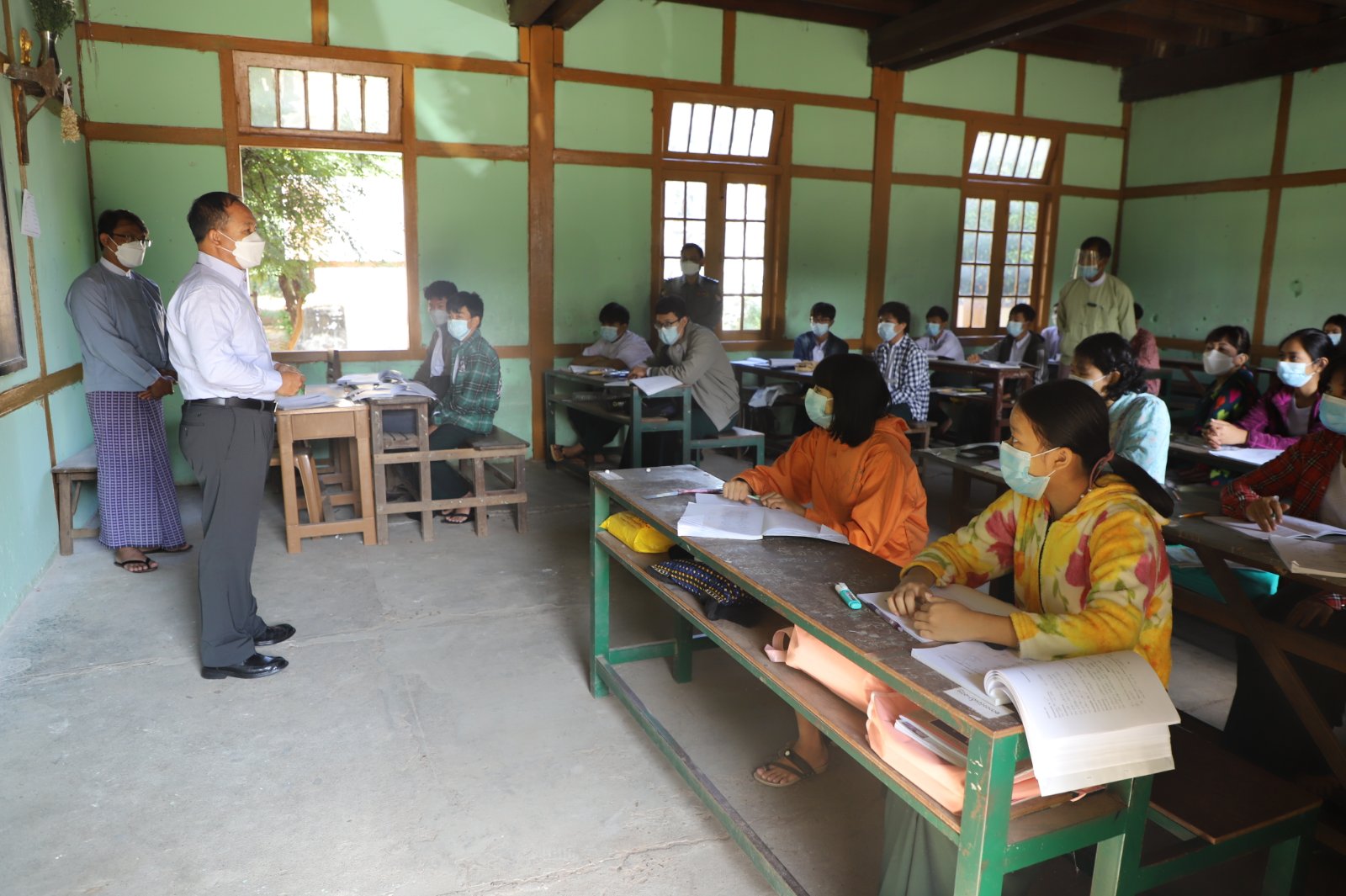 ယင်းနောက် တိုင်းဒေသကြီး ဝန်ကြီးချုပ်နှင့် တာဝန်ရှိသူများသည် အဆိုပါကျောင်တွင် ကျောင်းသား၊ကျောင်းသူများ စိတ်အေးချမ်းသာစွာ ပညာသင်ကြားနေမှုအား လှည့်လည်ကြည့်ရှုအား ပေးပြီး ကျောင်းသားမိဘများနှင့် ရင်းရင်းနှီးနှီးတွေ့ဆုံနုတ်ဆက်ကာ ကျောင်းခန်းမဆောင် အဆောက် အဦသစ် တည်ဆောက်နေမှုအား ကြည့်ရှုစစ်ဆေးကာ မြို့နယ်စည်ပင်သာယာရေးအဖွဲ့၊ မီးသတ် တပ်ဖွဲ့ဝင်များနှင့် ကြက်ခြေနီတပ်ဖွဲ့ဝင်များ ပူးပေါင်း၍ ကျောင်းဝန်းအတွင်း သန့်ရှင်းရေးလုပ်ငန်းများ ဆောင်ရွက်နေမှုအား ကြည့်ရှုအားပေးခဲ့ကြသည်။